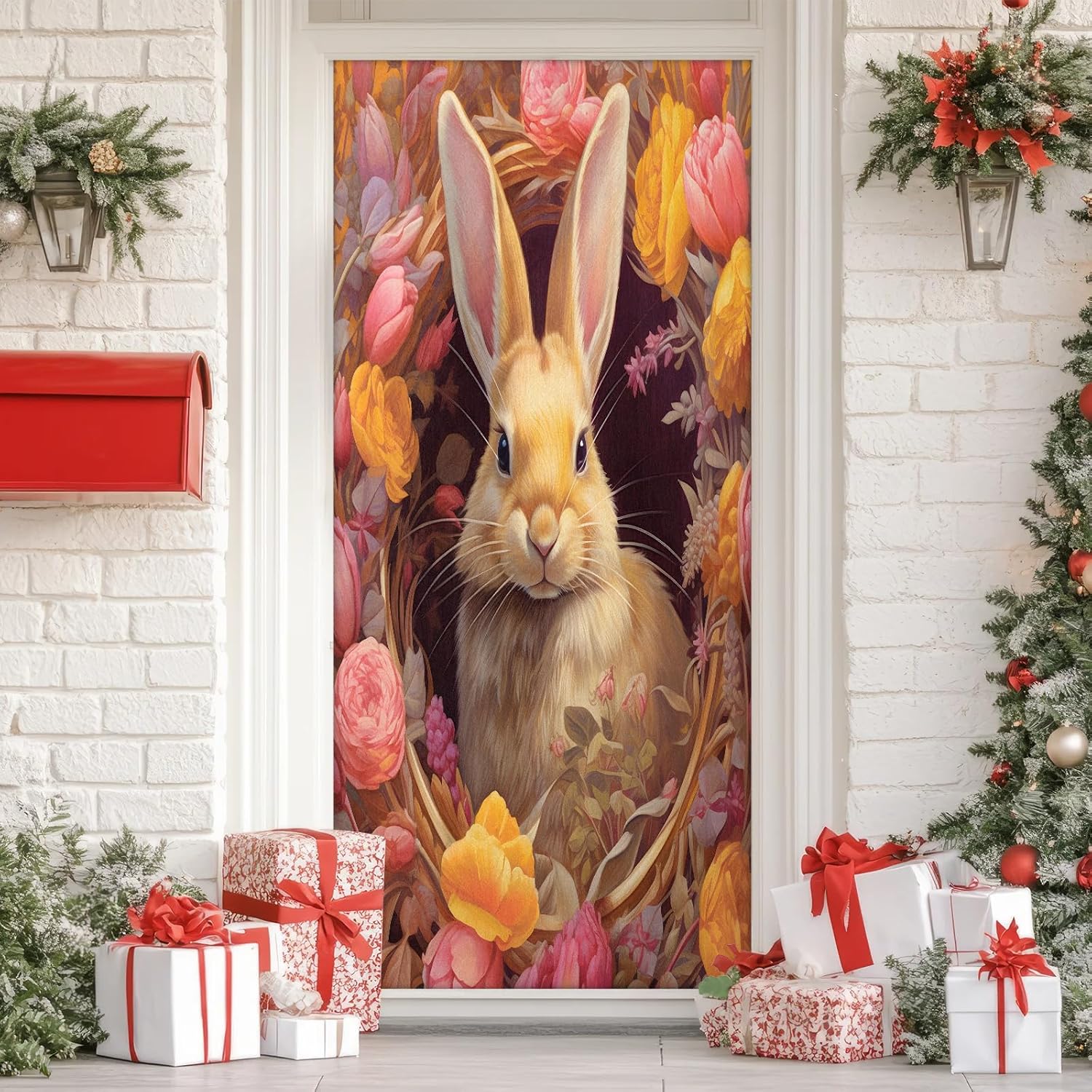 Christmas Door Cover High Elastic Front Door Cover Stretch Festive Door Covers Holiday Decor for Party Indoor Home