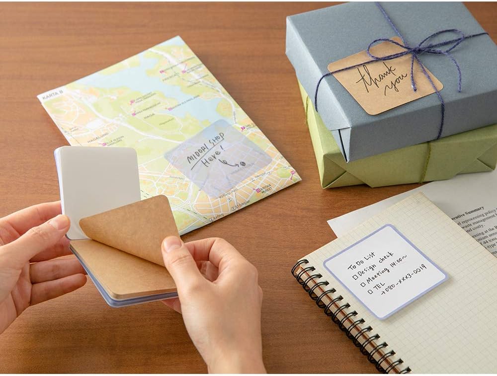 3 types of paper in one book "Eerabari Tsuzen" that can be removed from any place 3 types of paper in 1 book. Plenty of sheets with 30 high-quality paper, 20 kraft paper, 20 tracing paper. Since it is removable, you can choose from 3 types of paper freely. The simple design is easy to use by anyone, and the rounded corners give a gentle impression. You can use messages or notes for "fine paper", gift messages "kraft paper", or tracing paper when you want to write information through a map or book. Product Name: Midori 91802675 Sticky Notes, Spinning Paper, Blue