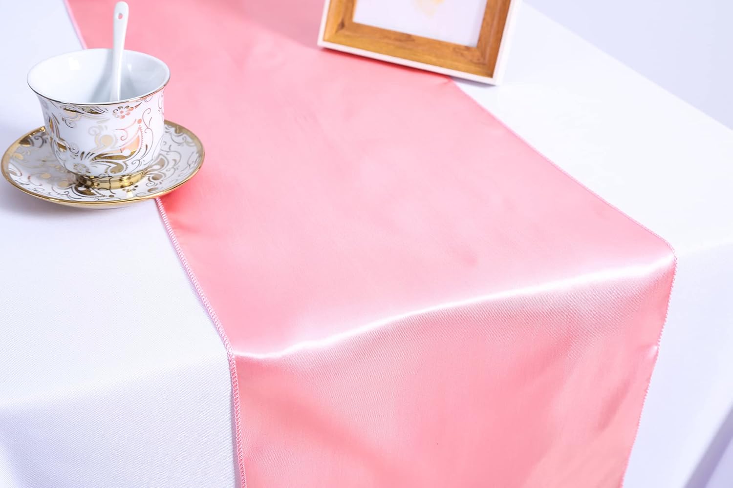 Material: Polyester. Color: Pink. Weight: 19.4 ounce. Size: 12 x 108 inch. High Quality Fabric: This table runner is made of high quality polyester fabric, 100% polyester material makes this table runner smooth and soft, elastic, not easy to deform and very durable. Design style: This solid color table runner, simple and natural, easy to match, comfortable in hand, drooping naturally, is a beautiful embellishment for romantic weddings. Wide Application: It can be used to decorate weddings, graduation ceremony,dining table,party,family gathering,holiday party,meeting and more. Easy to Clean: You can wipe with a damp sponge or wipes, not machine washable. Warm Reminder: The picture of the table runner is taken under the light, and there may be slight differences in the actual color, I hope you can understand.