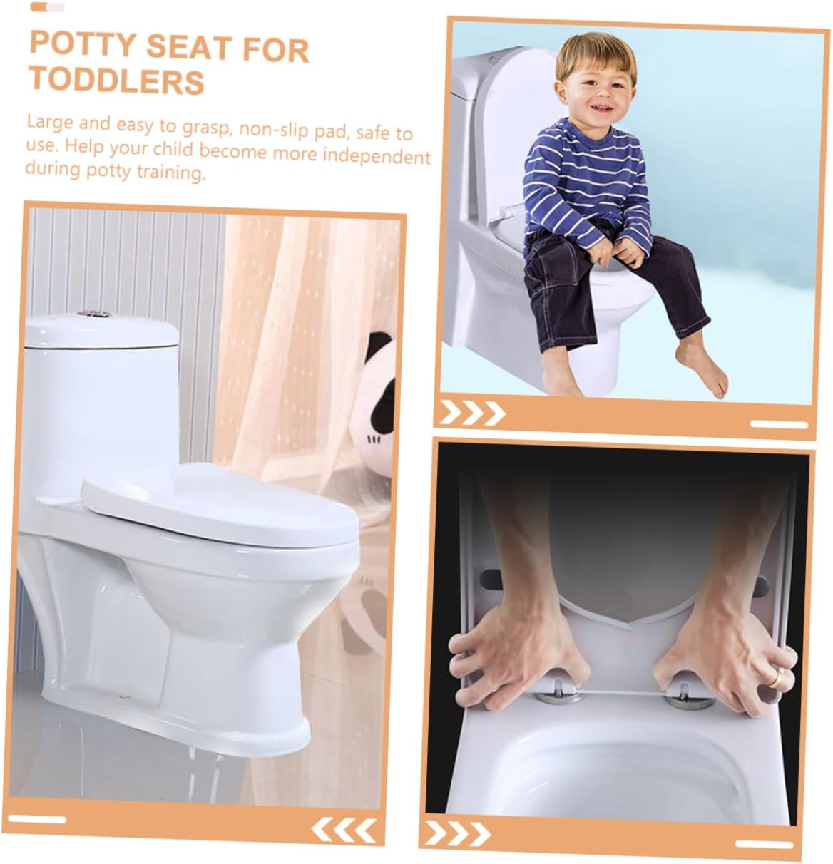 Package List 1 × Potty Training Toilet Seat Characteristics -Material:PP toilet seat -Color:White universal toilet seat pad -Size:34.00X26.00X4.00cm/13.36X10.22X1.57in portable toilet for - The potty seat is easy to install and simple to operate, designed to match with most toilet safely. home potty training seat - Professional design will fit for your , to protect your babies' spine reasonably from damage. toilet seat cushion - With smooth surface, easy to wash, simple to use, and convenient for your . - With good workmanship, this potty toilet seat has a smooth surface and edges with no burr, which will not scratch your 's skin children's toilet seat. - Provide additional security to make your and children feel while sitting on it ladder.Goods Informationseat cushion Place a seat on your family toilet to make training more appealing.potty seat for toilet Lightweight and portable, designed with bright colors, suited for your . toilet trainer rings This toilet seat pad is well-made of PP material, and .universal toilet seat pad With unique design, is for your kid to have toilet seat training experience